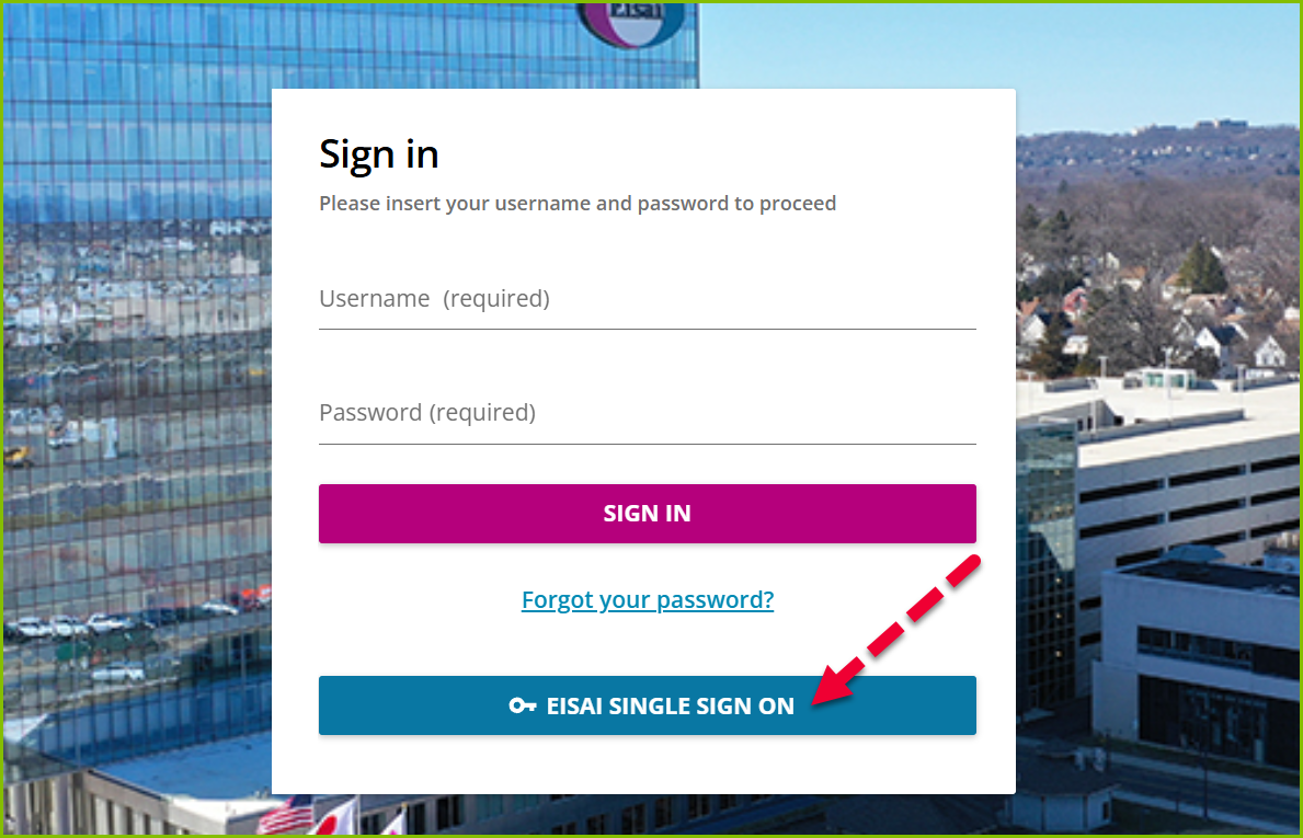 5. Tap the "EISAI SINGLE SIGN ON" button and enter your network password.